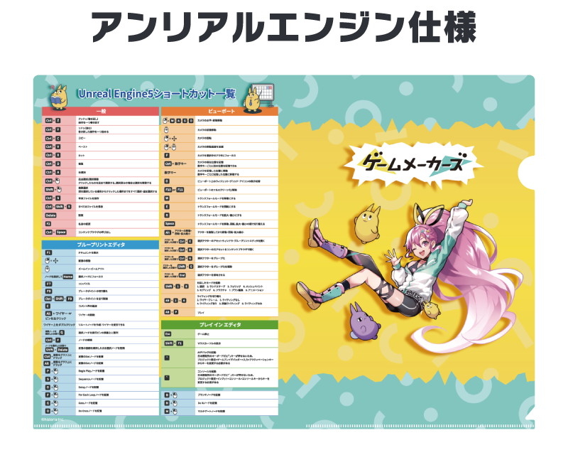 今回は第一弾として、「ゲームメーカーズ スクランブル2025」会場で即完売したアンリアルエンジンやUnityのショートカット一覧付きクリアファイルをはじめとする4種類のグッズを販売します。
