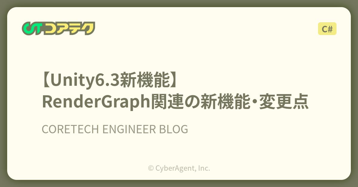 サイバーエージェント ゲーム・エンターテイメント事業部 コア技術本部(以下、コアテク)は2026年1月21日(水)、『【Unity6.3新機能】RenderGraph関連の新機能・変更点』と題した記事を公開しました。
