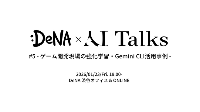 ディー・エヌ・エーは、2026年1月23日(金)に開催されたAI技術に関する勉強会イベント「DeNA × AI Talks #5 – ゲーム開発現場の強化学習・Gemini CLI活用事例 –」における、アーカイブ動画および講演のスライド資料を公開しました。