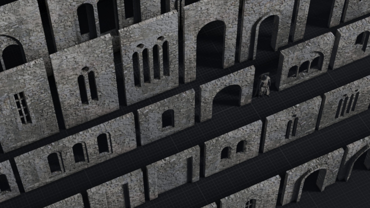 中世の街並みを彷彿とさせる、石でできた建造物の壁のモデルをまとめたモジュラー式アセットです。48種類のメッシュを収録しており、7種類のテクスチャが付属しています。