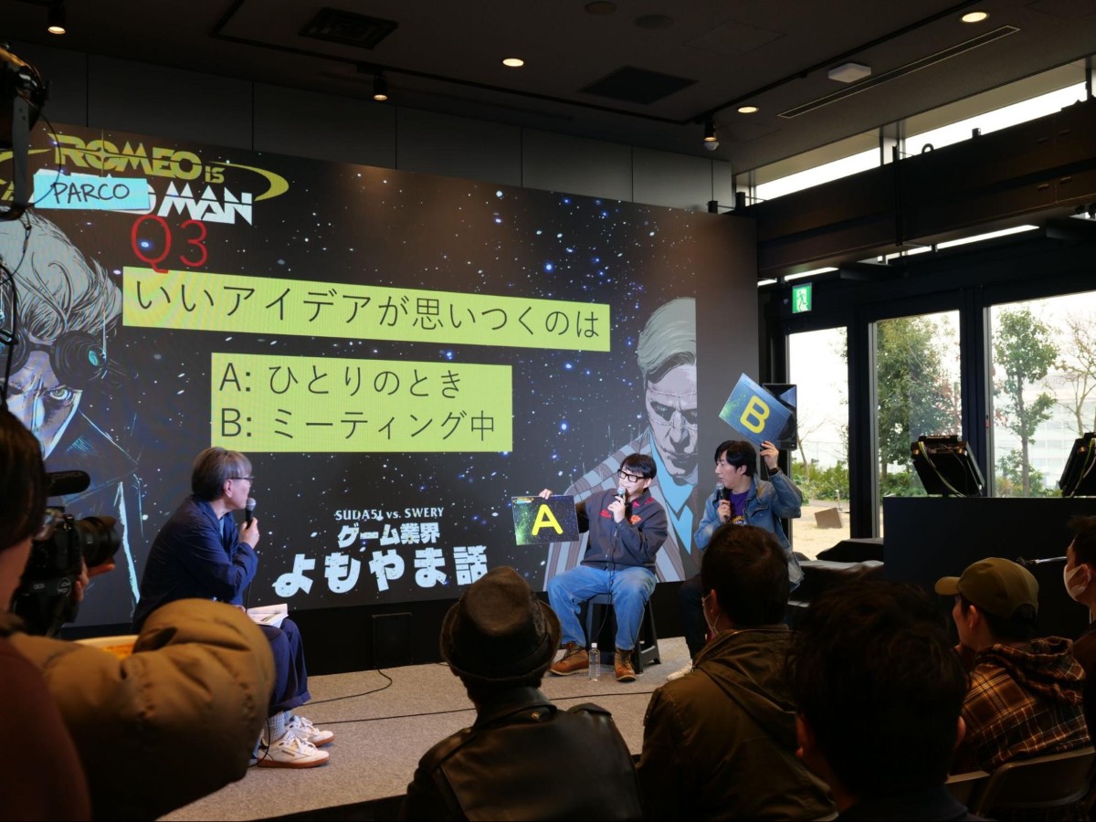 また、SWERY氏からは「(ゲーム開発におけるアイデア出しのミーティングでは)どうしても“やりたいこと”よりも“やれること”を話しがちなので、積極的に“やりたいこと”を話すべき」といった発言もありました。