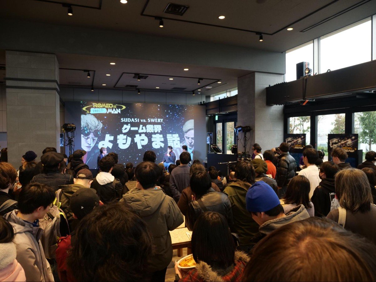 グラスホッパー・マニファクチュアによる最新アクションゲーム『ROMEO IS A DEAD MAN』(2026年2月11日(水)発売)の試遊コーナーのほか、須田剛一(SUDA51)氏とSWERY氏が登壇するトークイベントもあり、会場には多くのファンが集まっていました。