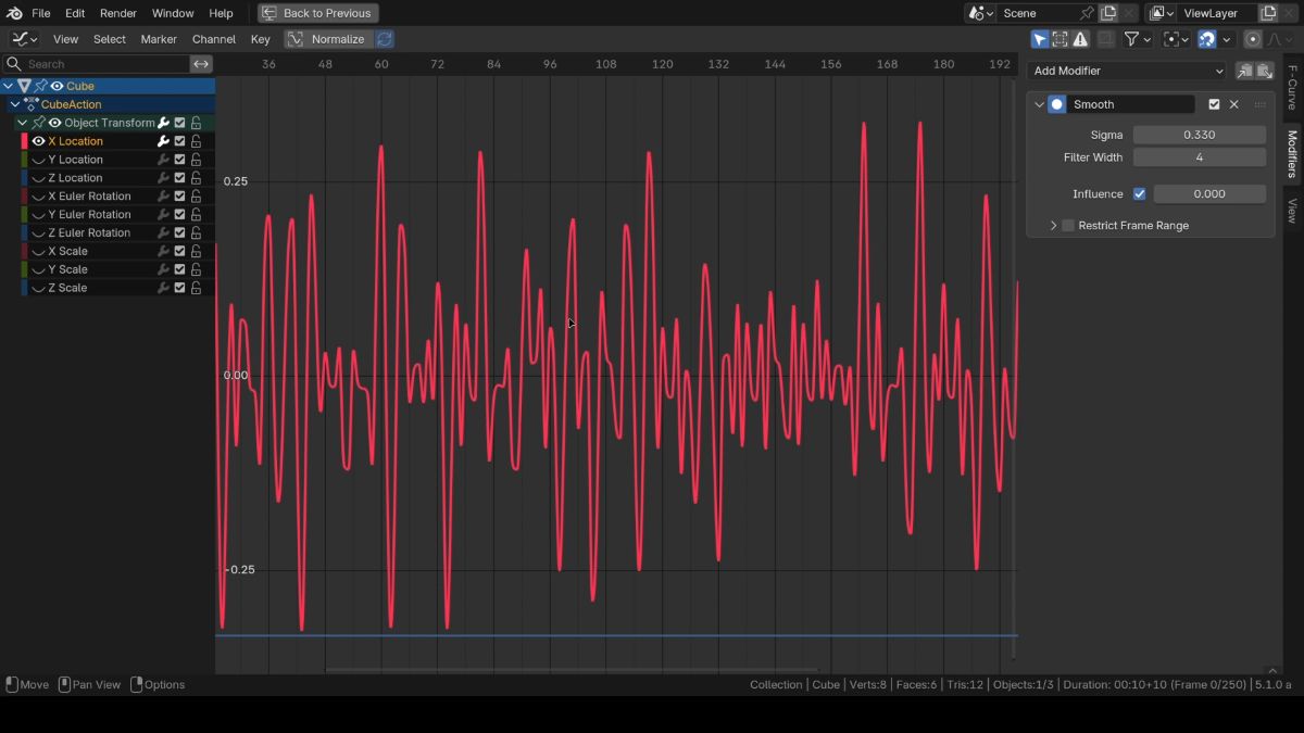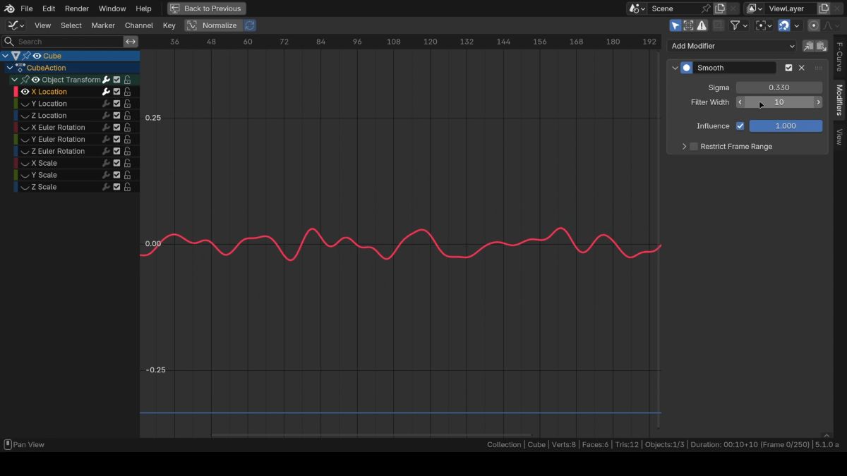 また、アニメーション機能では、Fカーブを非破壊で滑らかにする新しいモディファイア「Gaussian Smooth」が追加されました。