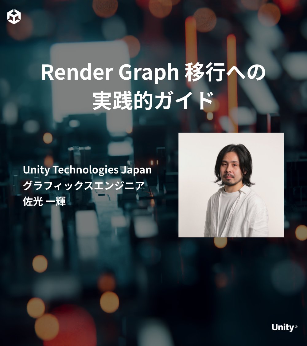 Unity 6より正式に導入されたレンダリングパイプライン効率化フレームワーク「Render Graph」をテーマに、その概要や移行の利点、またカスタムポストエフェクトの制作事例などを紹介しています。