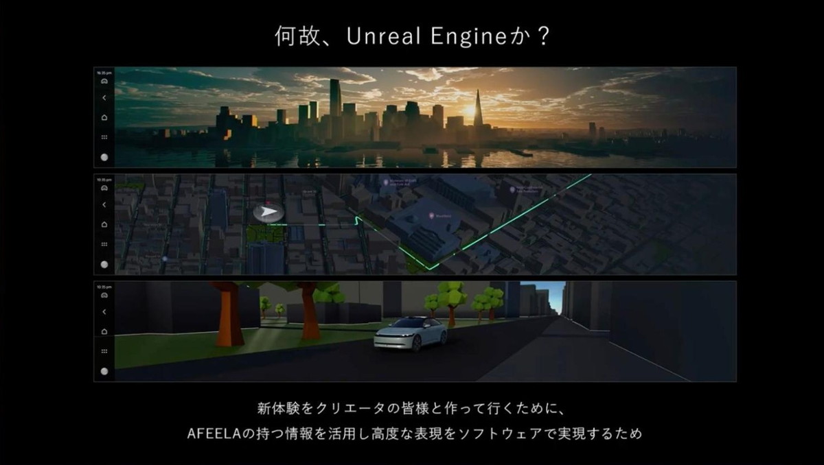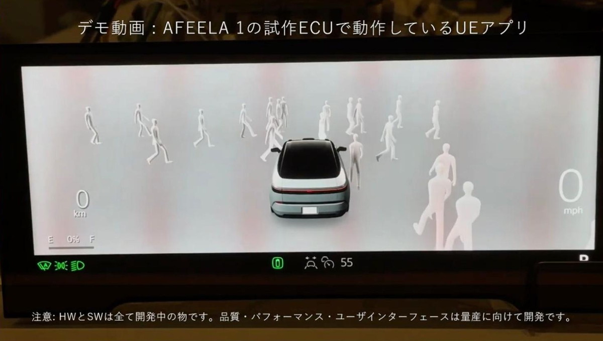 AFEELA 1の試作ECU上で動作しているUEアプリのデモ(全て開発中のもの)