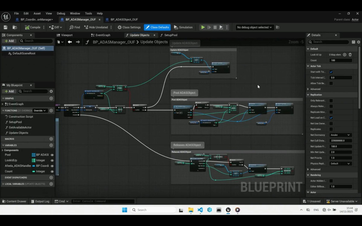 ADASオブジェクトの管理とプーリングシステム ADAS Managerと呼ばれるブループリントクラスは、本質的にはオブジェクトプーリングシステムとして機能しています。