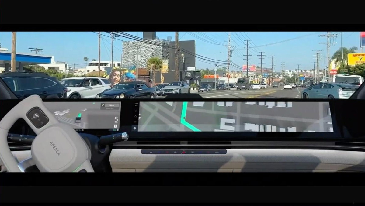 「AFEELA Inteligent Drive」こと、AFEELA 1の自動運転デモ動画。フロントパネル内の2つのGUIは、エンターテインメント表現との親和性の高さからUEで開発。どんなシーンでも利用できることを重視して、Level 2+を想定した開発が進められている