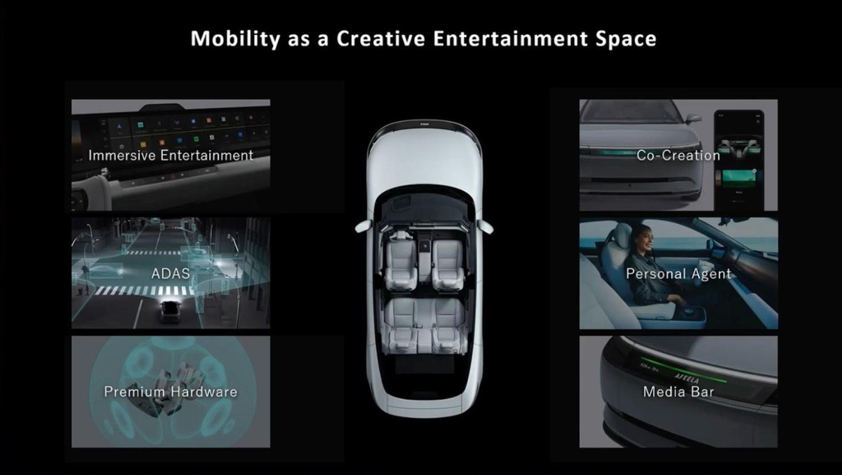 SHMが掲げる「Mobility as a Creative Entertainment Space」の実例として開発が進められている『AFEELA 1』。6つの主要機能で構成されている