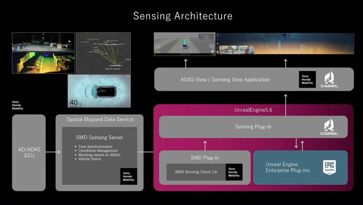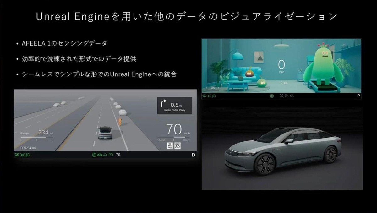「一方にはUEで表現されるリアルタイムマップがあり、もう一方には『AFEELA 1』のセンサーのライブデータがあります。例えば、ADASは周囲の車や歩行者などを検知できるセンサーです」