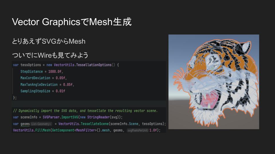 「Unity6.3で今こそ Vector Graphics入門」では、UnityでSVGデータをインポートし、UIやグラフィックの作成に活用できる公式パッケージ「Vector Graphics」の使い方を解説。同パッケージはUnity 6.3よりUI Toolkitに統合されている(画像はスライド資料より引用)