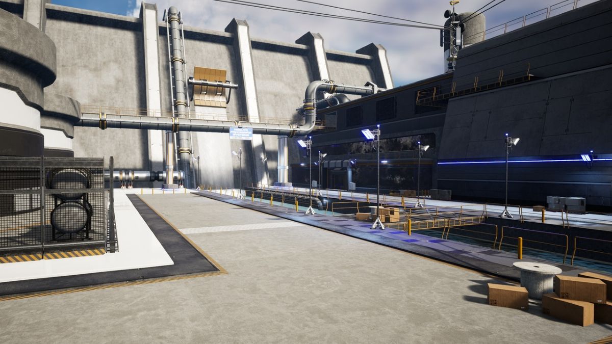 工業施設において排水や廃棄物などを浄化する処理プラントをイメージした、SF作品向けの環境アセットです。機材やパイプ、施設の壁や床など、89種類のメッシュが用意されています。