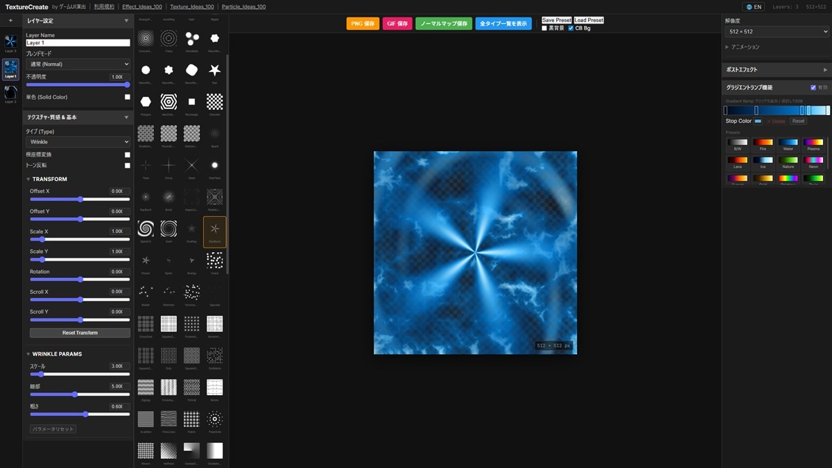 「TextureCreate」は、サイバーエージェントのゲーム・エンターテイメント事業部(SGE)に所属するUI演出デザイナー「たかゆ」氏が作成した無料ツール。