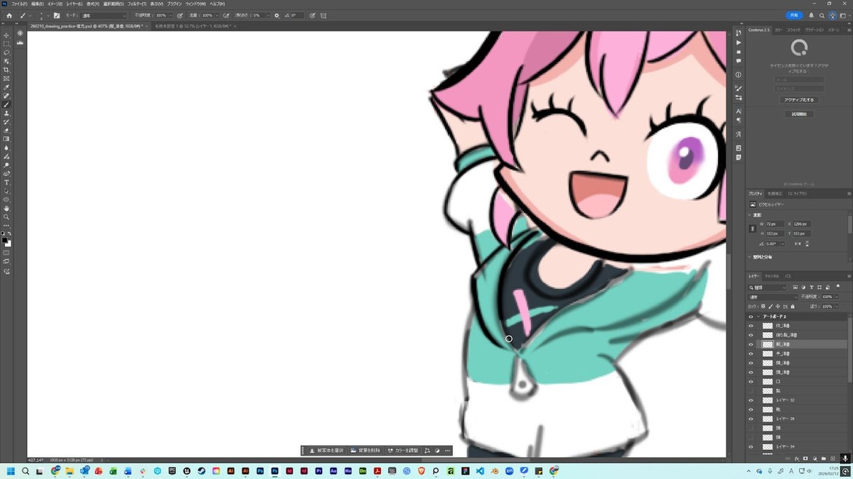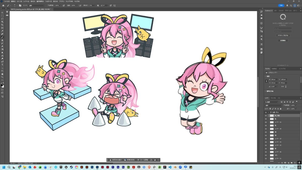 Photoshopでツールバーとレイヤーパネルを出しても画面が窮屈にならないので、これまで通りの画面構成で作業できました。 また、キャンバスにリファレンス画像を表示しながら描くこともできます。視線があちこちに飛ばないので、集中して効率よく作業できました。