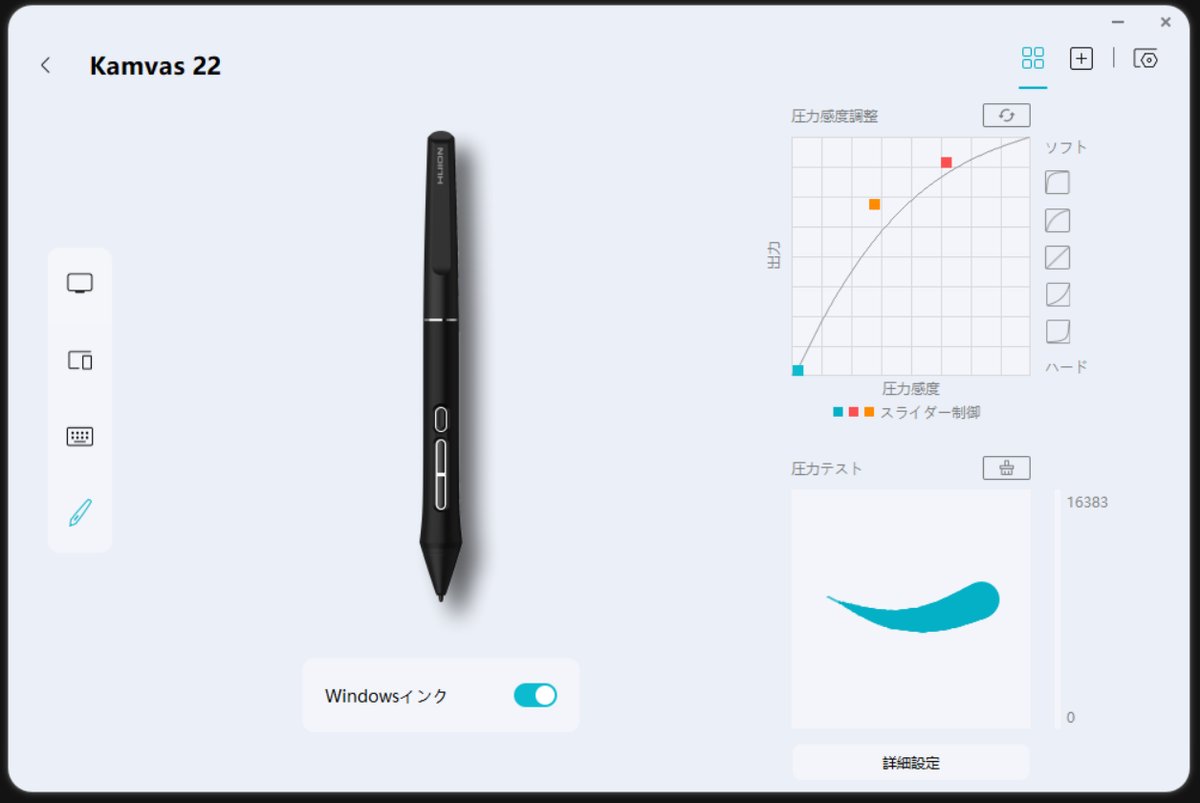 ドライバの導入を含めたセットアップには特につまずくことなく、サクッと使い始められました。ペンのボタン割り当てや筆圧カーブの設定はドライバから行えます。