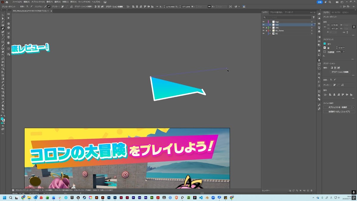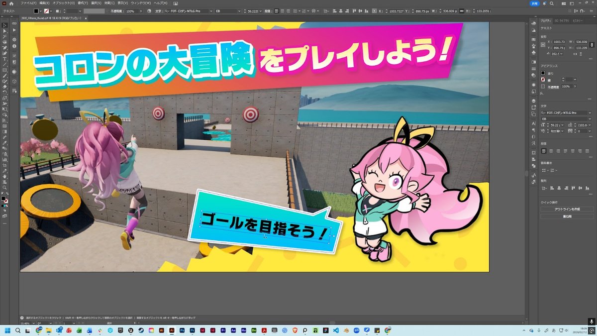 検証にあたり、架空のゲームタイトル「コロンの大冒険」の販促バナー画像を制作しました。