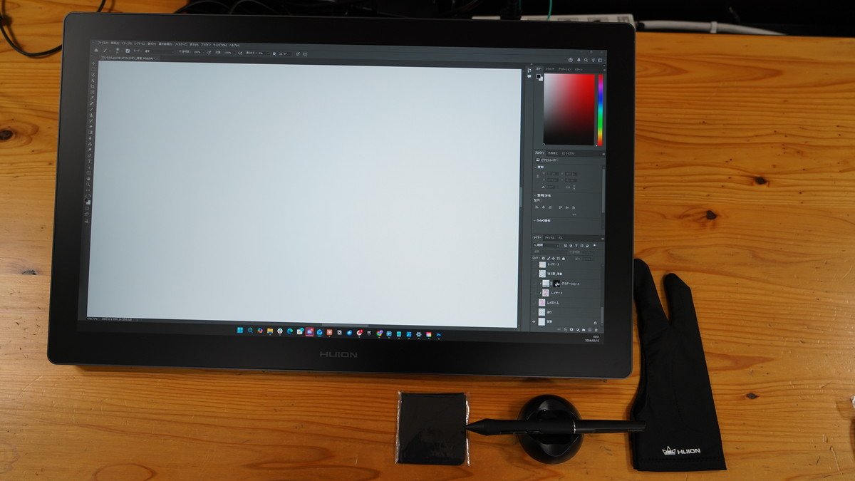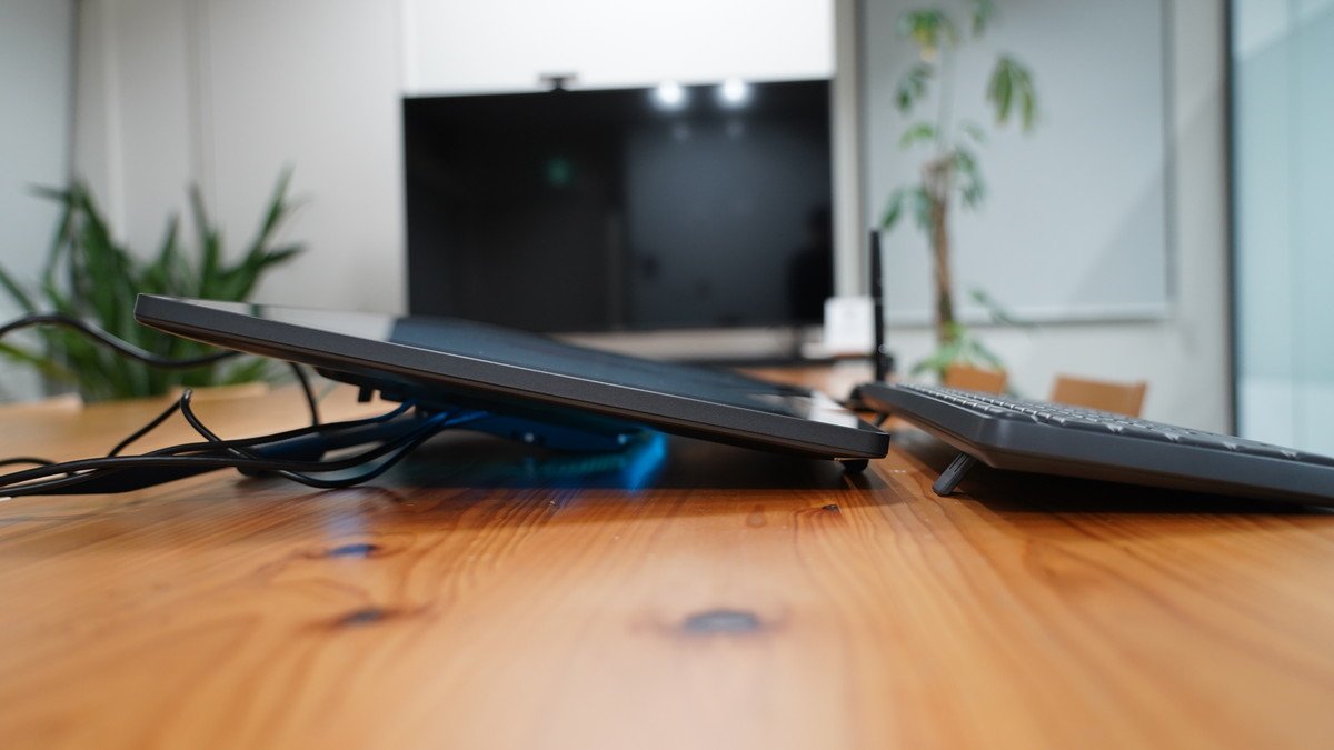 21.5インチの液タブは、当然ながらそれなりの面積を占有します。デスクの奥行きによってはキーボードの置き場所に工夫が必要でしょう。