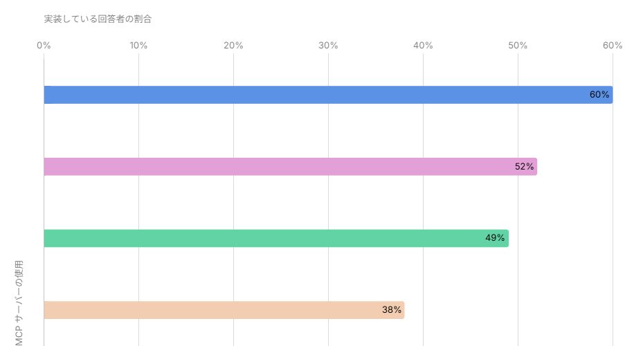 AI活用に関しては、300人中62%がプログラミング支援AIツールを導入していると回答。また、MCP(Model Context Protocol)サーバーの使用率は回答者全体で見れば半々である一方、スタジオの規模が大きくなるにつれて使用率が高くなる傾向にあることが報告されています。