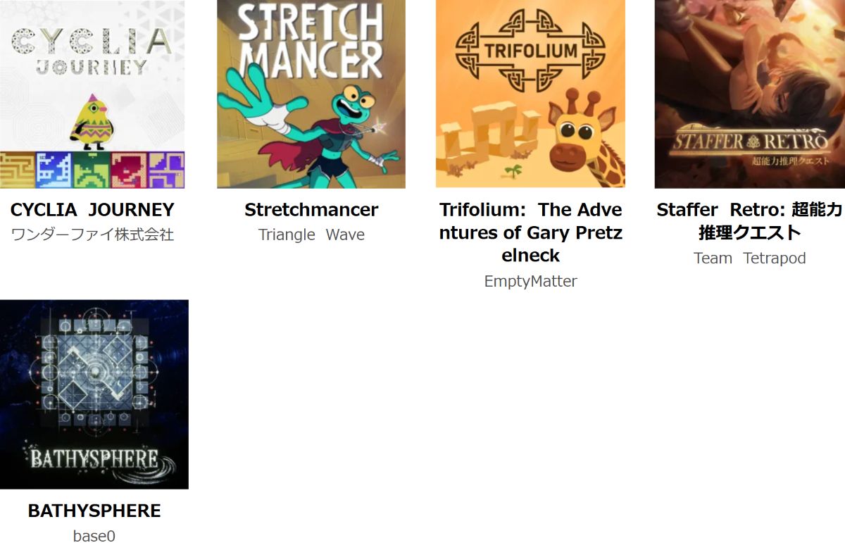 何度も遊びたい部門(One More Try)ノミネートタイトル一覧(画像はプレスリリースより引用)