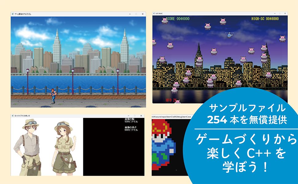 - プログラミング言語「C++」の使い方を、ゲーム開発を通して実践的に学習できる初心者向け解説書