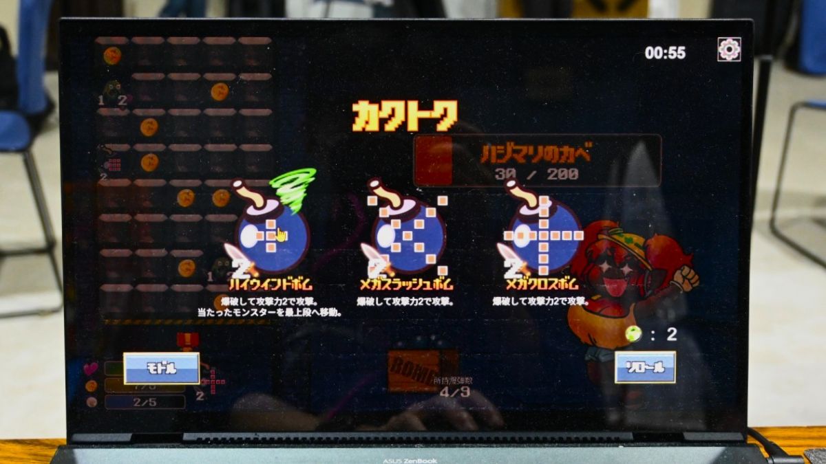 爆弾はデッキから毎ターンドローされ、同時に2個まで盤面に配置できますが、ゲームを進めることで新たな爆弾の獲得や爆弾の合成が可能に 。敵を倒せばボーナス効果を選択できるほか、ボスを撃破すると強力なボスレリックが手に入るため、配置と強化の2つの戦略性がミックスされたゲーム性 を楽しめます。