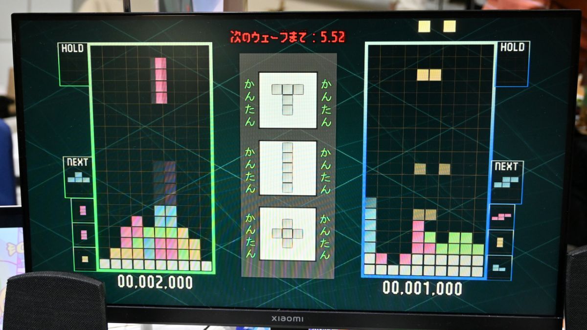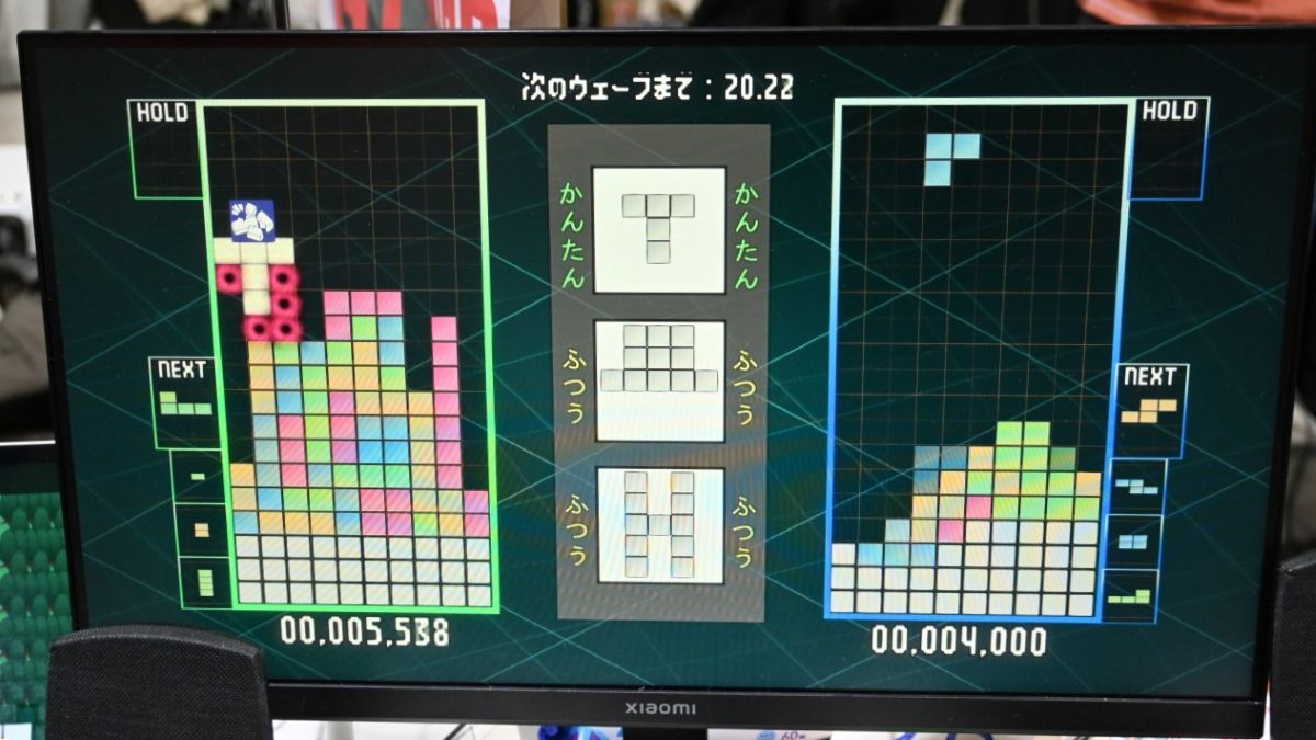 登場するブロックは当初は4パターンほどだったところ、来場者のプレイの様子を見て「もっとバリエーションがあった方が面白いのでは」と、ブース内でのリアルタイムアップデートも実施 。最終的には僅か1ブロックだけの使いやすいものから、もはやまったく繋がっていないものまで、バリエーション豊かすぎるブロックが降り注いでいました。