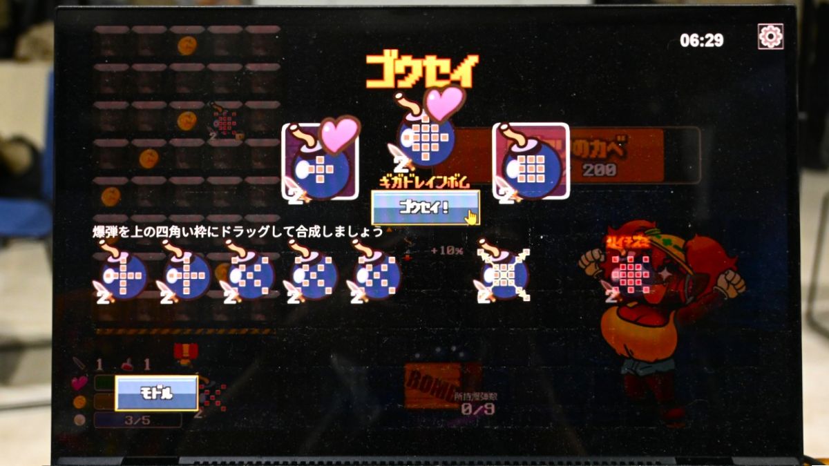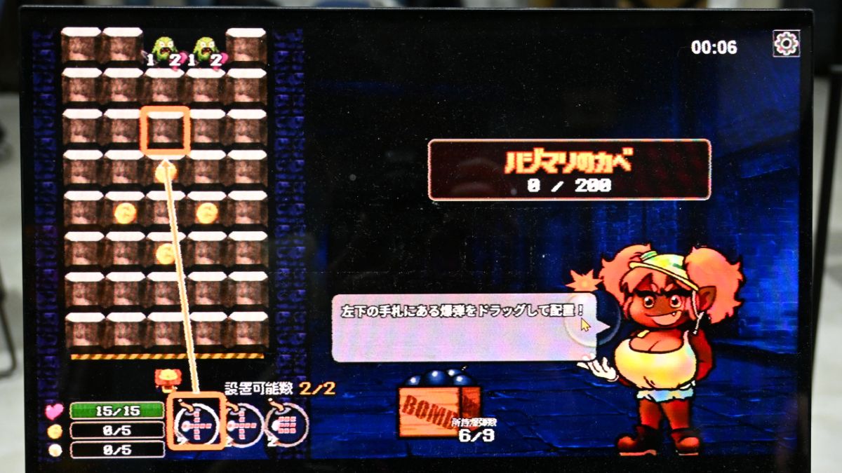 プラン通りの連鎖を決めるのはもちろん、降ってくるブロックの中に爆弾が含まれている可能性もあるので、偶然の大連鎖が発生すると爽快感は抜群 。写真でお伝え出来ないのは残念ですが、ドワーフちゃんの胸部がドドンと揺れるこだわりの演出など、細部に至るまでの作り込みも味わえました。