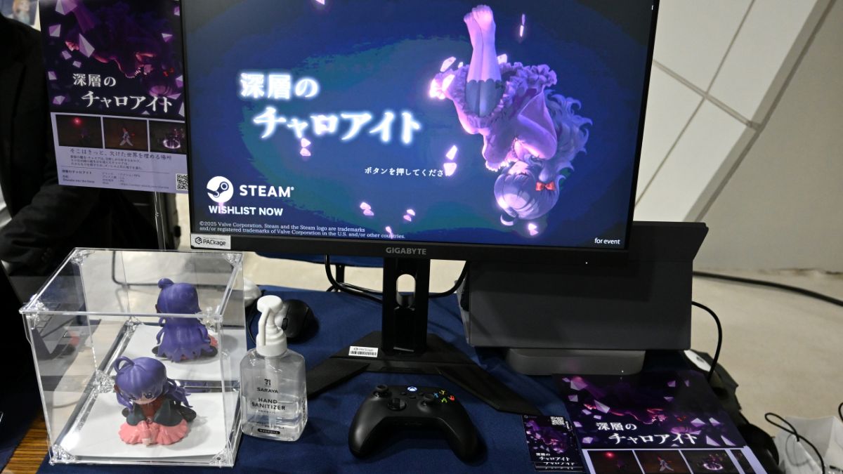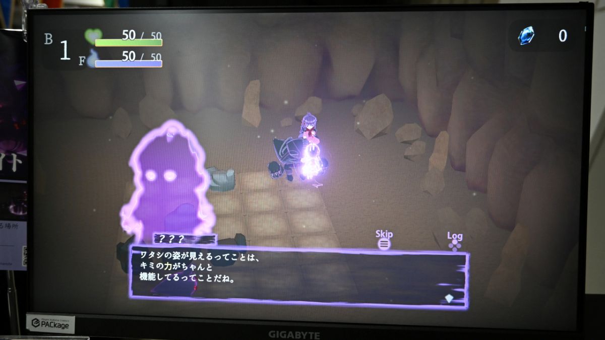 巨大なゴーレムの肩に乗った少女がダンジョンの奥深くへと進んでいく 、どこか儚さを感じさせるグラフィックも印象的なアクションRPG『深層のチャロアイト 』も、多くの来場者の注目を集めていた作品のひとつ。