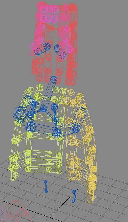 続いて、人間の骨格と同じように、内部に仕込んだ骨同士がどう接続されるのか、ジョイント(関節)の設定も行います。例えば、人間の膝関節は鳥類とは違って、前方に曲がりませんよね。こういった関節の曲げ角の範囲設定なども行います。