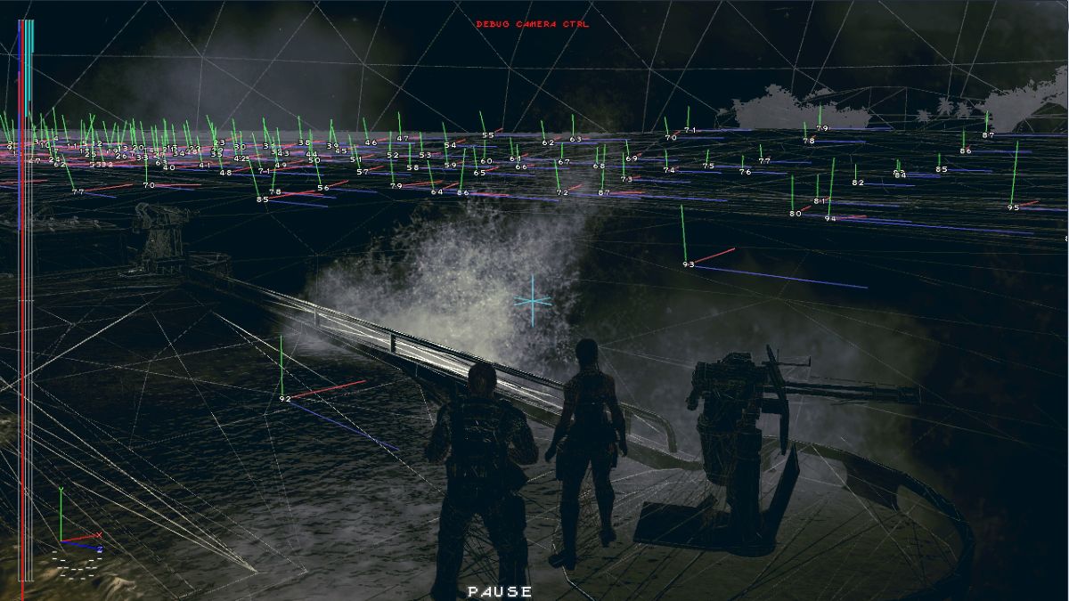 PlayStation 3向けに発売された『バイオハザード5』より。水上でのボス戦において、ボスの動きに翻弄されて荒れ狂う波は、波動シミュレーションではなくボーンスキニングで行われていた。波の表現すらもゲームメカニズムの一部として制御したいゲームにおいては、自然現象までをもボーンでコントロールすることもあるのだ