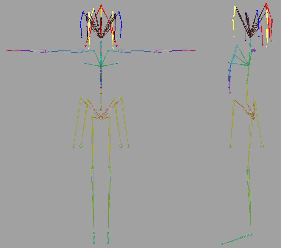 つまり、スケルトンは人体系3Dモデルに埋め込んだだけではダメで、スケルトンの各骨が動いた時に、人体3Dモデルの表皮側のどこに連動させるかの対応付けさせる設定が必要なのです。かといって適当に設定してしまったらへんてこなことになります。