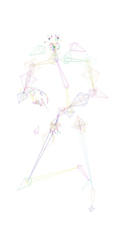 この「ボーンの集合体」であるスケルトンを、ポリゴンでできた人体3Dモデルの中に埋め込んだら、それで終わりなのでしょうか?実は、まだまだ道半ばです。今はまだ、スケルトンの骨を動かしても、人体3Dモデルは動きません。