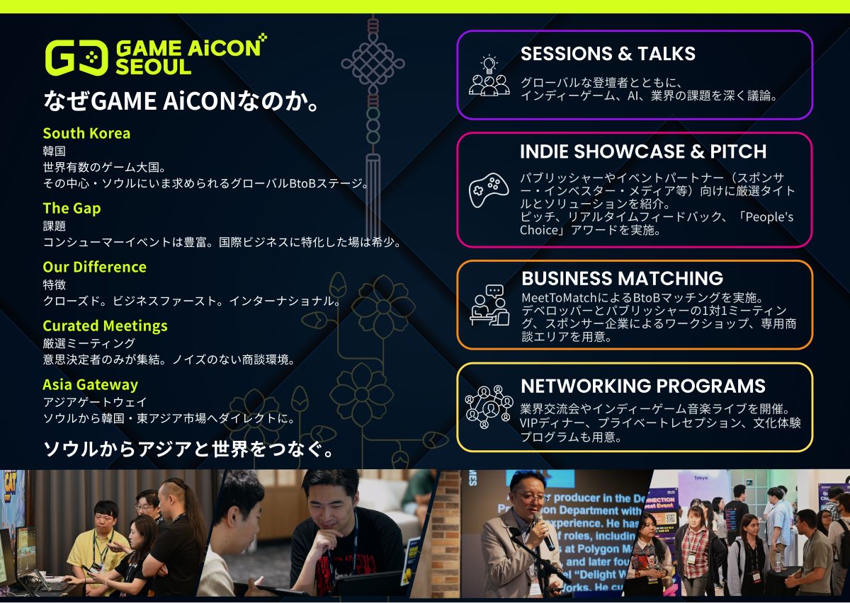 - 韓国・ソウルのゲームカンファレンス&展示イベント「GAME AiCON Seoul 2026」、2026年5月26日(火)~28日(木)に開催