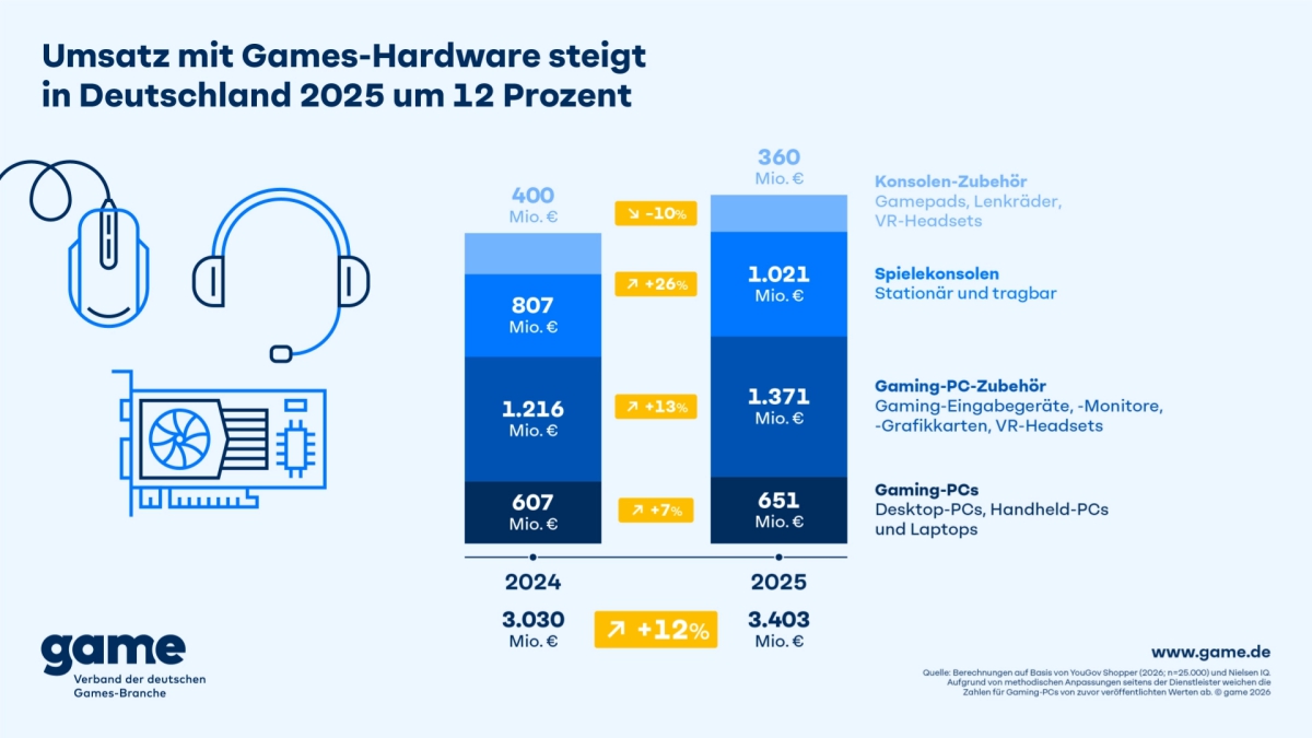 2025年のドイツ国内におけるゲーム関連ハードウェアの売上データ(画像はレポート記事より引用)