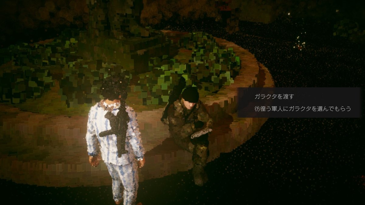 すると、ゲームの雰囲気はガラリと変わり、感傷的な空気が漂うようになりました。 そして、「今撃ち殺した人にも家族がいたのかな」とか、「今ぶっ壊したマンションで誰かが家族団欒していたかもしれないな」とか、敵という一括りで捉えていたものが解きほぐされ、個々のパーソナリティが気になるようになったんです。