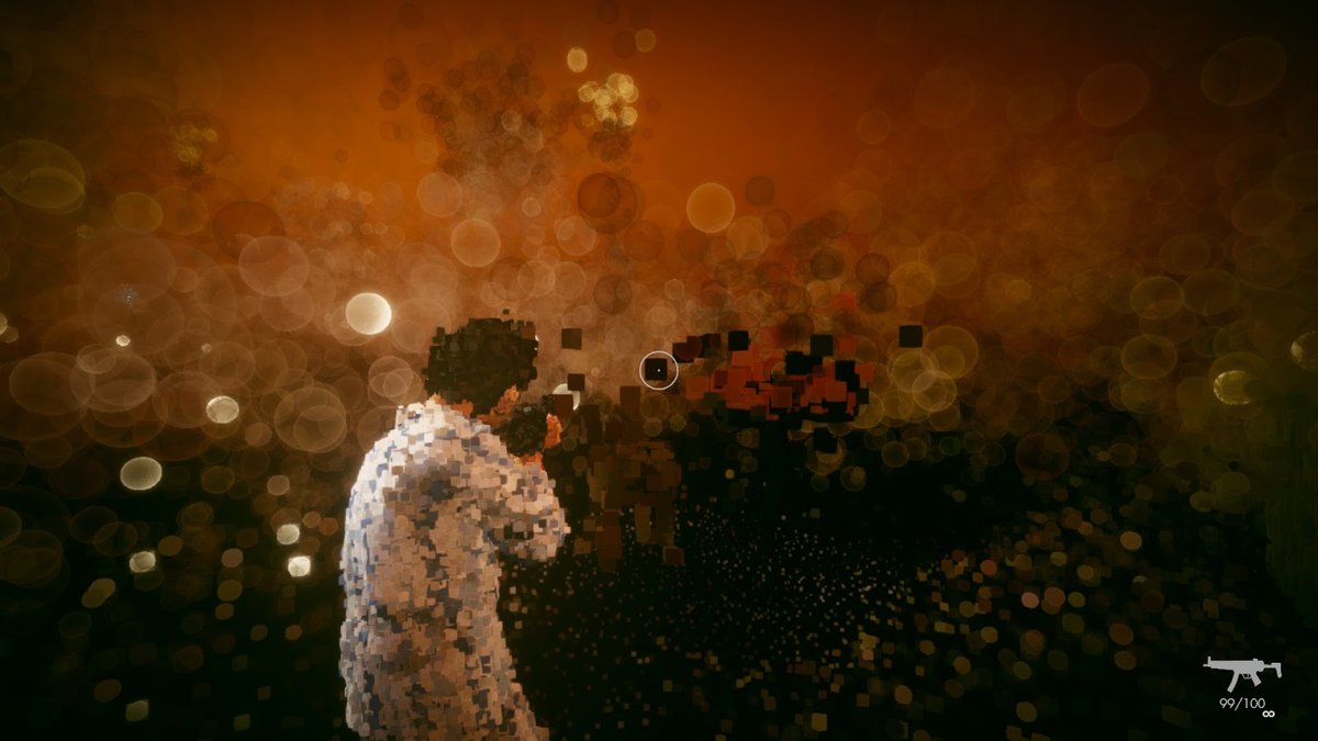 Dylan: 基本的にはベースとなるモデルが配置されたレベルがあって、ロードした段階でポイントクラウドに変換されます。ポリゴンがあったところにパーティクルが作られる形で、粗さや密度設定も可能です。これを撃つことで元(のモデル)に戻っていきますが、ポリゴンレベルまでは戻らなくて、その近い形まで変化するようなイメージです。