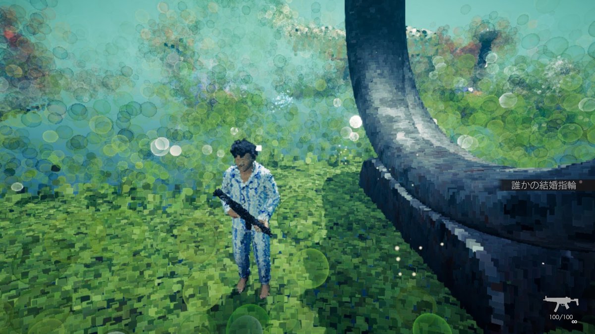 そして周囲には剥がれ落ちた結婚指輪が拾えるアイテムとして、無意味なほど大量に落ちています。最初に指輪を拾ったとき、多くのプレイヤーは「何か重要なアイテムなのでは?」と感じると思います。 ところが実際には、指輪は無意味なほど大量に落ちていて、すぐに「なんだこれは?」という感覚に変わっていく 。