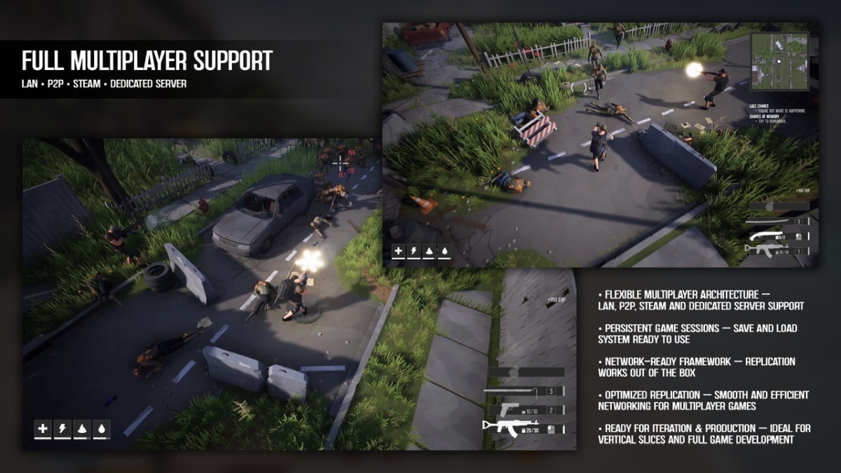 トップダウン型のサバイバルアクションゲームやRPGなどを制作できるテンプレートが、50%オフで販売中。