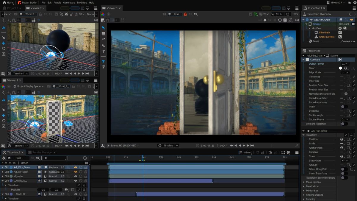 - レイヤーベースでモーショングラフィックス・VFXなどを制作可能。Google製レンダラー「Filament」を標準搭載し、USDなどもサポート