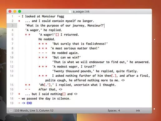 著者は同ツールについて、迅速で身軽な分岐の作成に適していると語り、大まかな設計図さえ用意しておけば、リニアなコンテンツを書く場合と同じ速度でダイアログを執筆可能になるとしています。